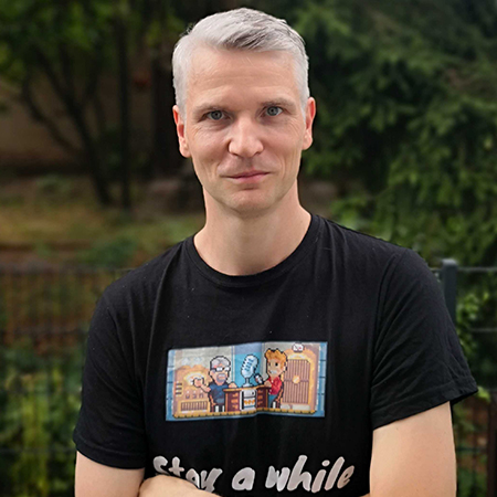 „Another Visitor. Stay A While, Stay Forever!“ Als sich diese gekrächzte Begrüßung 1984 aus dem C64 quetscht, vernimmt ein Gutteil der Gamer dank Dr. Alvin Atombender ihre allererste digitale Sprachausgabe. Heute wird das Sample aus dem Jump’n’Run-Puzzler „Impossible Mission“ monatlich zehntausendfach gehört. Denn es leitet umrahmt vom „Great Giana Sisters“-Theme seit einer Dekade „Stay Forever“ ein, den am 28.8.2011 erstmals bei iTunes onlinegegangenen Retrogames-Podcast „über alte Spiele von zwei alten Männern“, der schon des Öfteren auf Platz eins der deutschen Podcast-Charts gestanden – und in Karlsruhe seinen Anfang genommen hat. Der Gründungsmythos aus der vermeintlichen Bierlaune heraus ist akustisch dokumentiert: Da sitzen die ehemaligen „Gamestar“-Redakteure Gunnar Lott und Christian Schmidt mit ein paar Zäpfle-Flaschen halbwegs unvorbereitet in der Lottschen Weststadt-Altbau-Wohnküche um ein 8,95-Euro-Dreibeinmikro herum und beginnen ihre Gespräche über die PC-Spieleklassiker der 80er und 90er vom ikonischen Megaseller bis zum abseitig-obskuren Titel mit einer losen Plauderei über das Point-and-Click-Adventure „Baphomets Fluch“. „Wir hatten null Disziplin, aber beide gerade noch genug Restbekanntheit“, spielt Lott auf die goldene Ära an, in denen das damals bedeutendste PC-Spiele-Magazin noch weit über 300.000 Auflage verkauft.