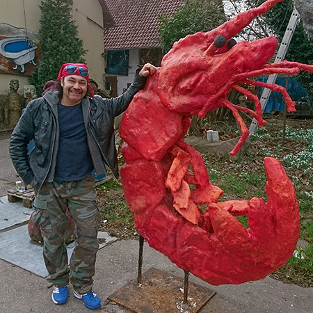 „Viel Licht, viel Schmerz“, antwortet Miguel auf sein Heimatland angesprochen, das er nach wie vor selbstbewusst im Herzen trägt und das immer wieder Ausdruck in seinem Werk findet – in Büsten Che Guevaras, aber auch sehr persönlich beim wurzelschlagenden Ruderboot „Adonde vayas, irás conmigo – Wohin du gehst, gehst du mit mir“, mit dem er 2005 auf der „Art Mar – Biennal de la Mediterrània“ im Museum Maritim festmacht. Sechs Jahre lebt und arbeitet Miguel in Barcelona. Oder um es mit seinem kopfüber in die Pfinz eintauchenden Schwimmer zu sagen: „Lo más elegantemente posible nos adentramos en nuestro destino – So elegant wie möglich springen wir in unser Schicksal“. Ebenso stolz ist Miguel darauf, dass er in seinem Berghausener Atelier bis auf das Gießen alles alleine stemmt: knoten, schweißen und sägen, wenn es sein muss mit schwerem Motorsägengerät.