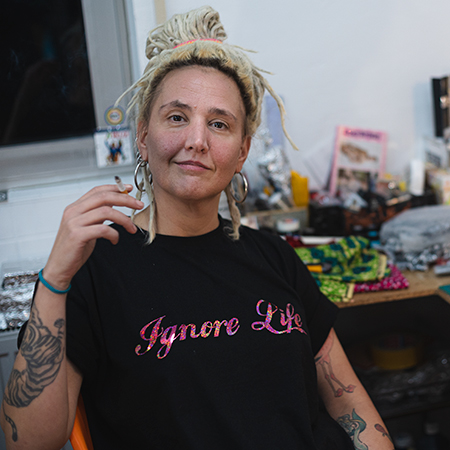 Vor ihrer Corona-Rolle rückwärts war Tinka Stock nach 13 Jahren als kreative Seele der Alten Hackerei eigentlich schon auf und davon. Das erklärte Ziel: wieder mehr auf die Kunst konzentrieren. Ob detailverliebte Deko zwischen Clubraum und Biergarten, Plakatdesigns oder andere Aushänge bis hin zur Gestaltung des „SAU e.V.“-Stands auf der „Fest“-Infomeile – vieles in der „Gepflegten Punkrockbar“ auf dem Alten Schlachthof trägt ihre klar erkennbare künstlerische Handschrift. Und nicht zuletzt ist sie mit dem Koordinieren des eingeschworenen Thekenteams von Anfang an quasi das Aushängeschild der Hacke. Schon unter Alexander Wentz und Ilja Töller arbeitete sie zwei Jahre an der Bar im Musikclub Schlachthof, Hackerei-Chef Christian „Plüschi“ Bundschuh ist dort seinerzeit als Tontechniker aktiv, bevor er 2007 um die Ecke in der ehemaligen Metzgerkantine seinen eigenen Laden eröffnet.