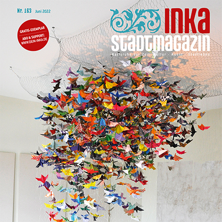 Großer Dank geht an unsere beiden Coverkünstlerinnen: Das Stadtmagazin-Cover stammt von einem „Sozpädal“-Kunstprojekt, das von der Karlsruher Künstlerin Tanja Schneider betreut wird. Das Kunstprojekt ist mit dieser Arbeit aus über 1.000 Vögeln ebenso wie die Künstlerin selbst auch auf der Kunstschau „ZART“ vertreten. Von der in München lebenden Fotografin Sylwia Makris stammt das Cover unserer „INKA Regiomagazin“-Ausgabe. Sie stellt im Kunstdorf Unterjesingen bei Tübingen aus, dem wir seit unserem „Super INKA #1“-Cover, das eine Familie aus Beton auf einer Parkbank zeigt, verbunden sind. Für ihr aufwendiges Fotoprojekt hat die Fotografin bekannte Bildikonen der Kunstgeschichte neu inszeniert.
