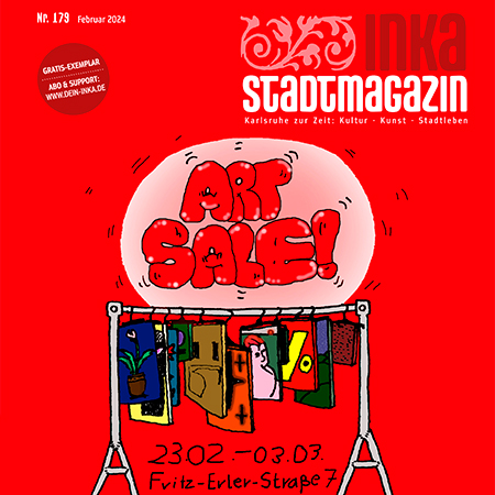 „Art Sale“ im Discounter-Style heißt es im ßpace, dem Kunstraum von Die Anstoß. Fabian Schroth, von dem unser Covermotiv stammt, studiert nach zwei Jahren an der Kunstakademie in Düsseldorf jetzt an der hiesigen HfG Produktdesign. Er kann aber auch sehr stimmungsintensiv malen, wie im INKA-Kunstteil zu sehen ist. Fabian Schroth bringt aus Düsseldorf vier Studenten mit, die mit solchen aus Karlsruhe und Landau einen konsumkritischen Kunstausverkauf samt transparenter Preise veranstalten.